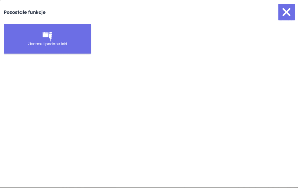 Menu dodatkowe daje dostęp do opcji, które nie są wyświetlane bezpośrednio na ekranie głównym tabletu. Umożliwia zmianę języka interfejsu, konfigurację parametrów technicznych, takich jak adresy IP, a także dostęp do ustawień systemowych i dodatkowych funkcji aplikacji. Dzięki temu personel medyczny i administratorzy mogą łatwo dostosować system do bieżących potrzeb placówki.