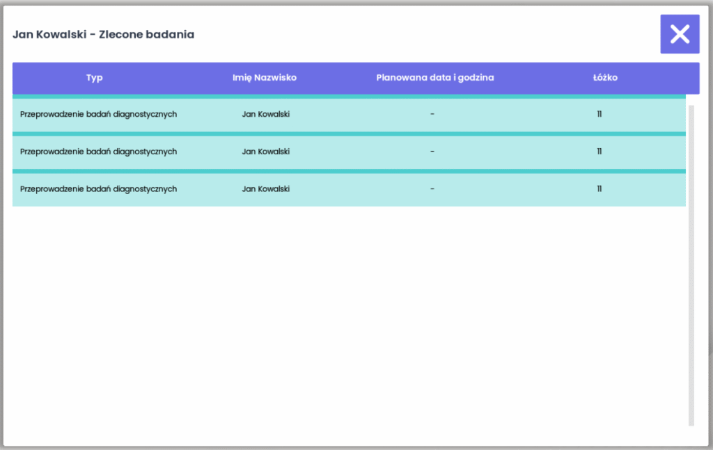 Moduł Zarządzania łóżkiem umożliwia pełną kontrolę nad przypisaniem pacjentów do konkretnych miejsc w salach. Personel może w prosty sposób zmieniać pacjentów zajmujących dane łóżka, dodawać nowych, zwalniać miejsca lub wypisywać osoby po zakończonej hospitalizacji. Dzięki temu proces rotacji pacjentów staje się szybki, przejrzysty i lepiej zorganizowany, co znacząco ułatwia codzienną pracę zespołu medycznego oraz ogranicza ryzyko błędów.