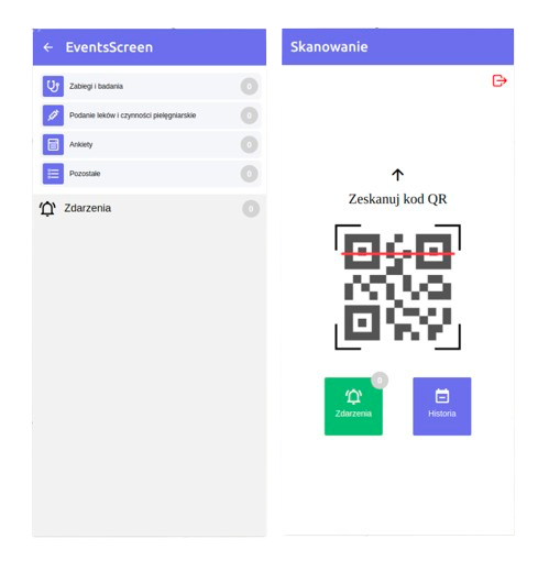 Skanowanie kodów kreskowych i QR, potwierdzanie czynności medycznych, obsługa leków.